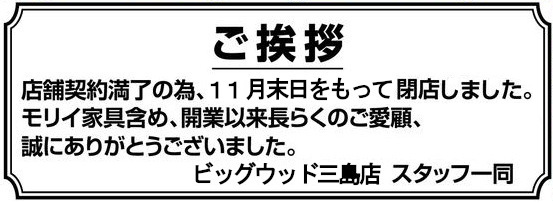 【三島店】完全閉店のお知らせ